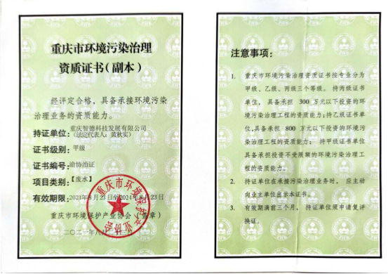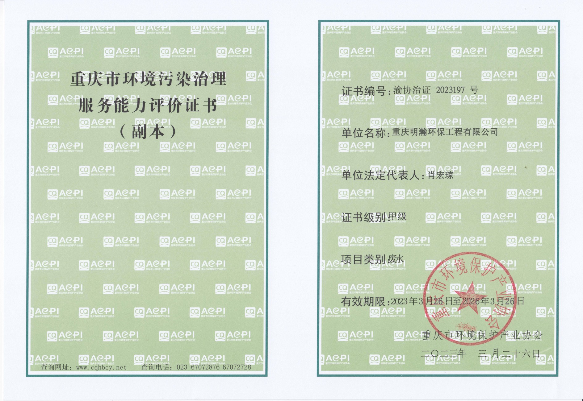 重庆市污染治理设施运行服务能力评比证书(副本)
